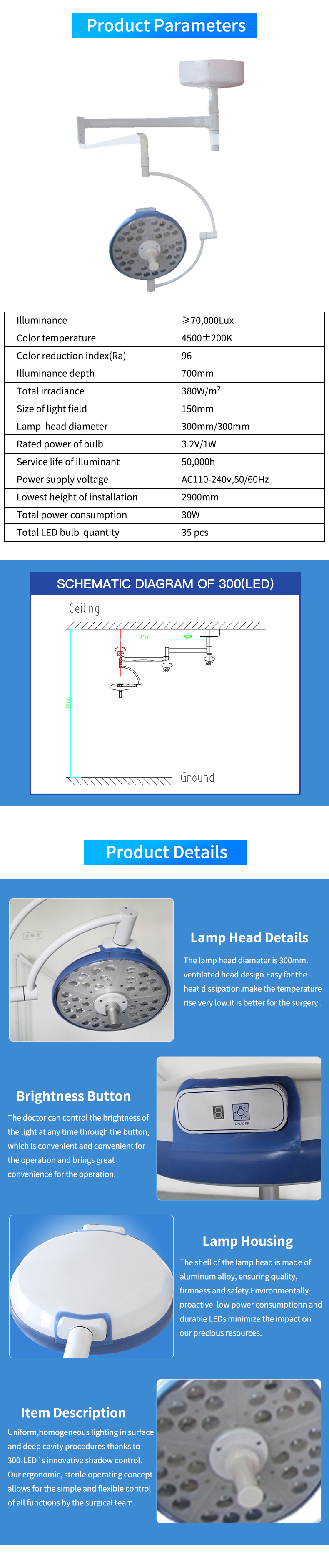 300(LED) Shadowless Operating Lamp