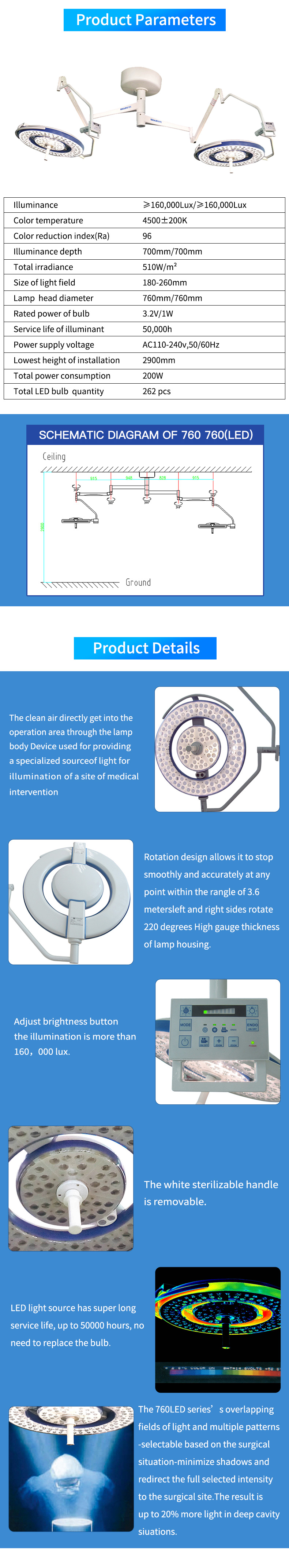 Uniform,homogeneous lighting in surface and deep cavity procedures thanks to 760-LED s innovative shadow control. Our ergonomic, sterile operating concept allows for the simple and flexible control of all functions by the surgical team.Almost unlimited LED life expectancy delivers tremendous product reliability and investment protection.
