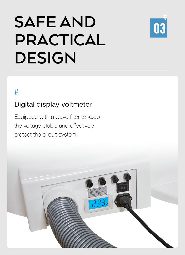 6. Built-in floor box with digital voltage display, equipped with wave filter.