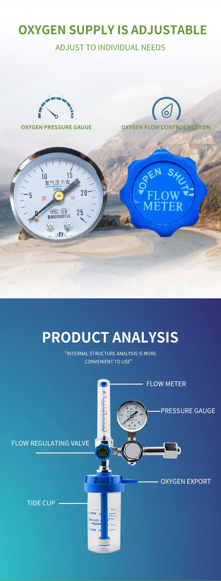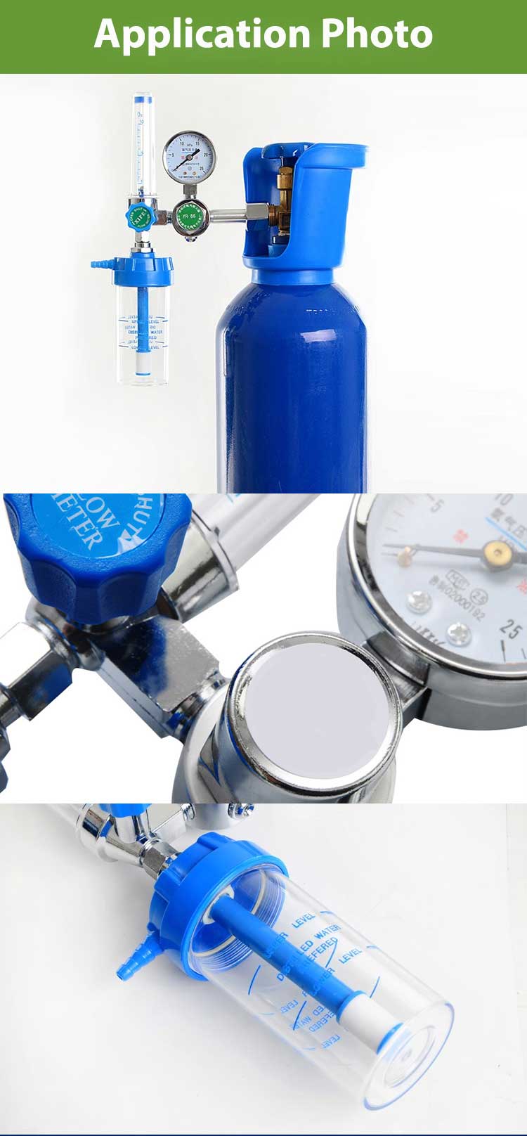 5.Front cover of gauge, tube of flowmeter and humidification cup are made of high grade shatter proof PC material.